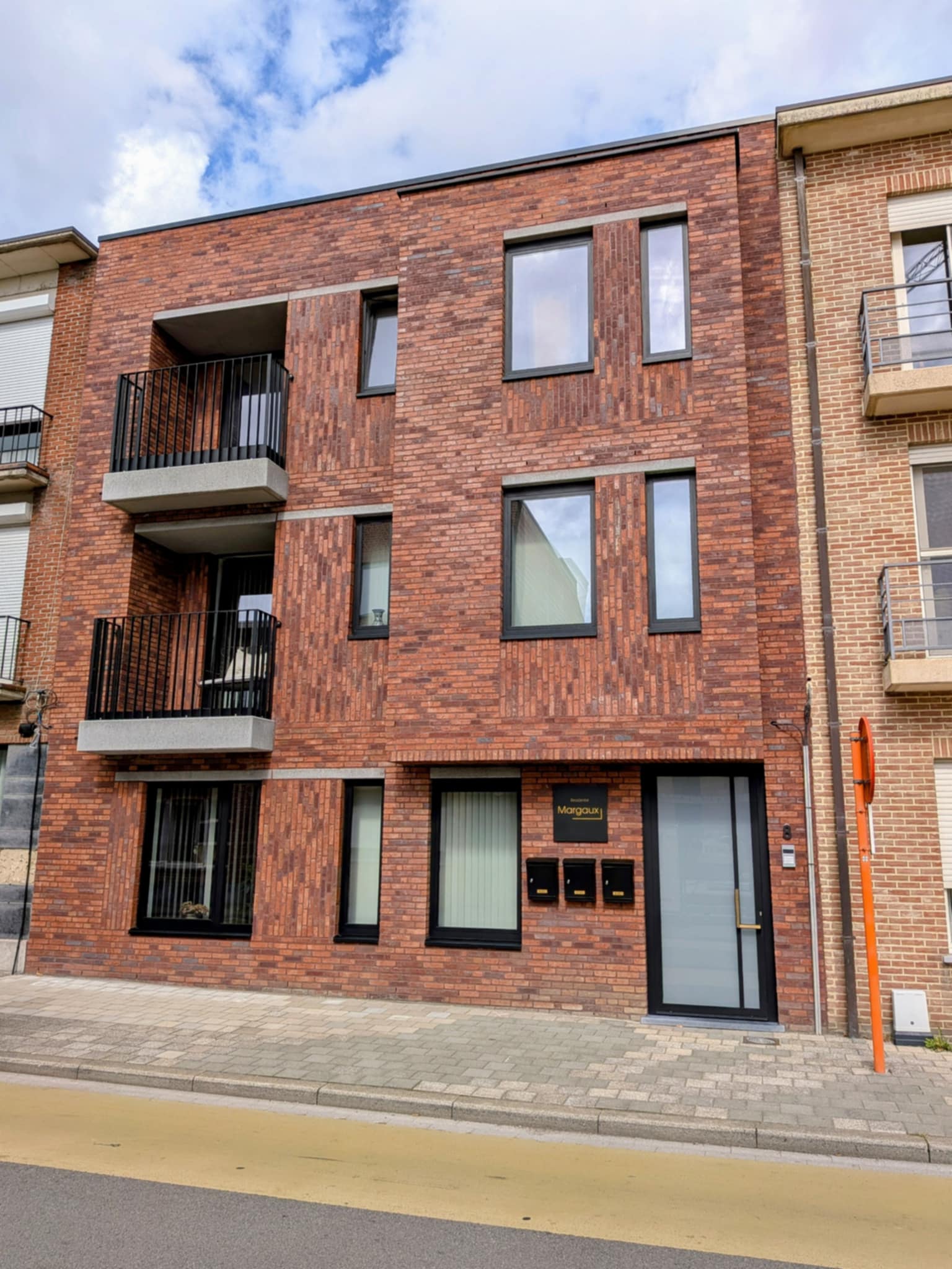 Renovatie in Mortsel met strakke Optima ramen en een performante voordeur met opgelijmd paneel en een naadloos ingefreesde deurtrekker.